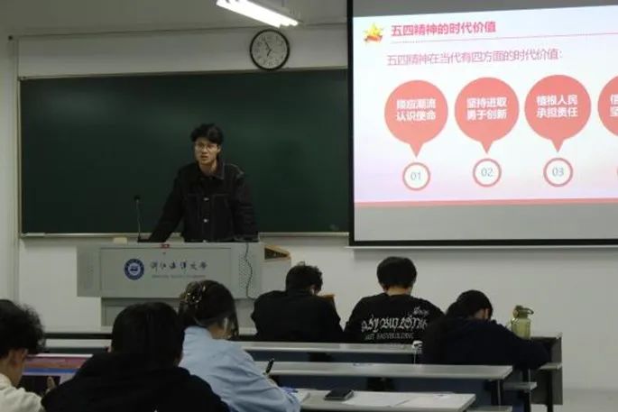宣讲员深情解读了五四精神的厚重历史、精神内核以及在新时代的独特价值,深刻剖析了新时代青年肩负的使命与责任,并强调,作为新时代青年,要敢于担当、勇于作为,不懈奋斗,敢于有梦、敢于追梦、勤于圆梦,努力成为新时代有担当、有作为的新青年。