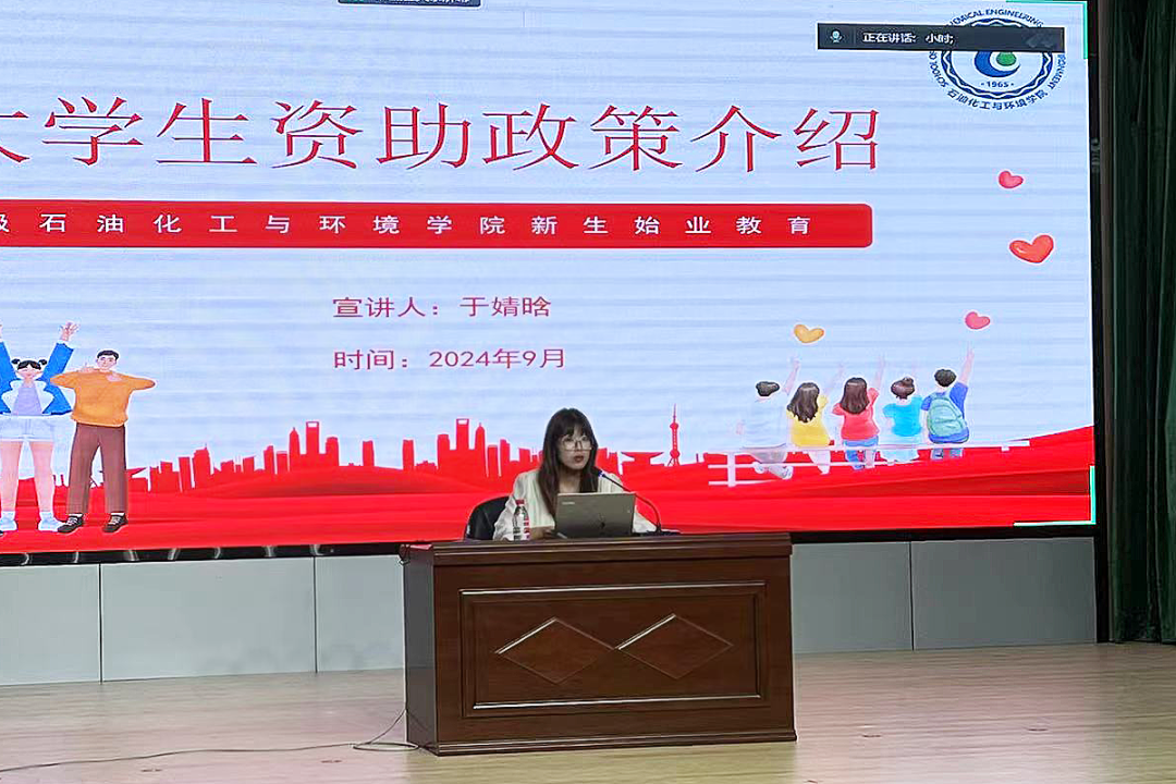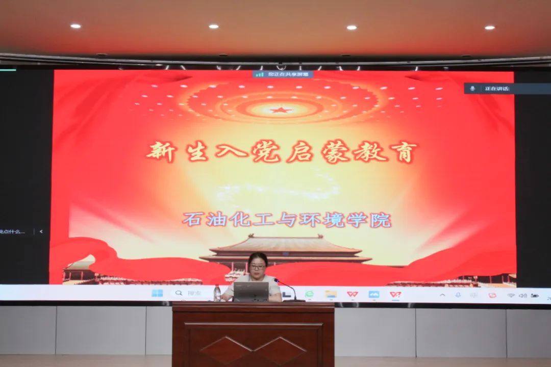 2024年9月16日晚,石油化工与环境学院2024级新生入党启蒙教育暨新生规章制度教育于定海校区活动中心二楼多功能厅开展。学院学工办主任徐强、辅导员赵子龙、于婧晗、时文苑老师进行轮流讲解,全体2024级新生参加。