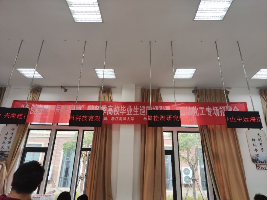 10月14日下午两点,“舟创未来·同舟启航”秋冬季高校毕业生巡回招引——浙海大人力资源分市场(石油化工专场)招聘会在学生服务中心召开。现场有十位公司代表莅临,包括中化、浙石化等大型企业。本次招聘有两百余名学生参加,活动现场人头攒动。