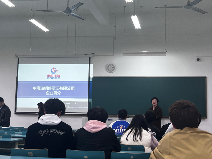 2023年3月24日下午,中海油销售浙江有限公司校招宣讲会在浙江海洋大学公共教学楼302教室举行。