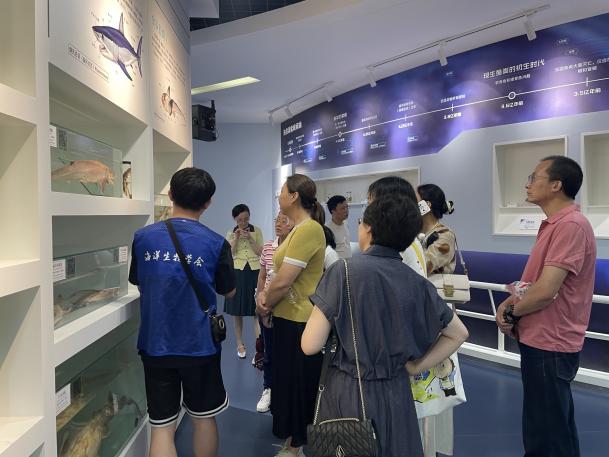 追忆往昔之余,校友们更想了解母校今日的成就与特色。行程的第二站来到了学校的海洋科学博物馆。这里陈列着丰富的海洋生物标本、先进的科考设备模型以及详实的海洋科学研究成果。从熟悉的财经领域到充满神秘与活力的海洋科学世界,校友们兴致勃勃地参观,为母校在海洋特色学科建设上取得的瞩目成就感到由衷的自豪和赞叹。博物馆的参观,不仅拓宽了视野,更让校友们深刻体会到母校“海纳百川、自强不息”精神的传承与发扬。
