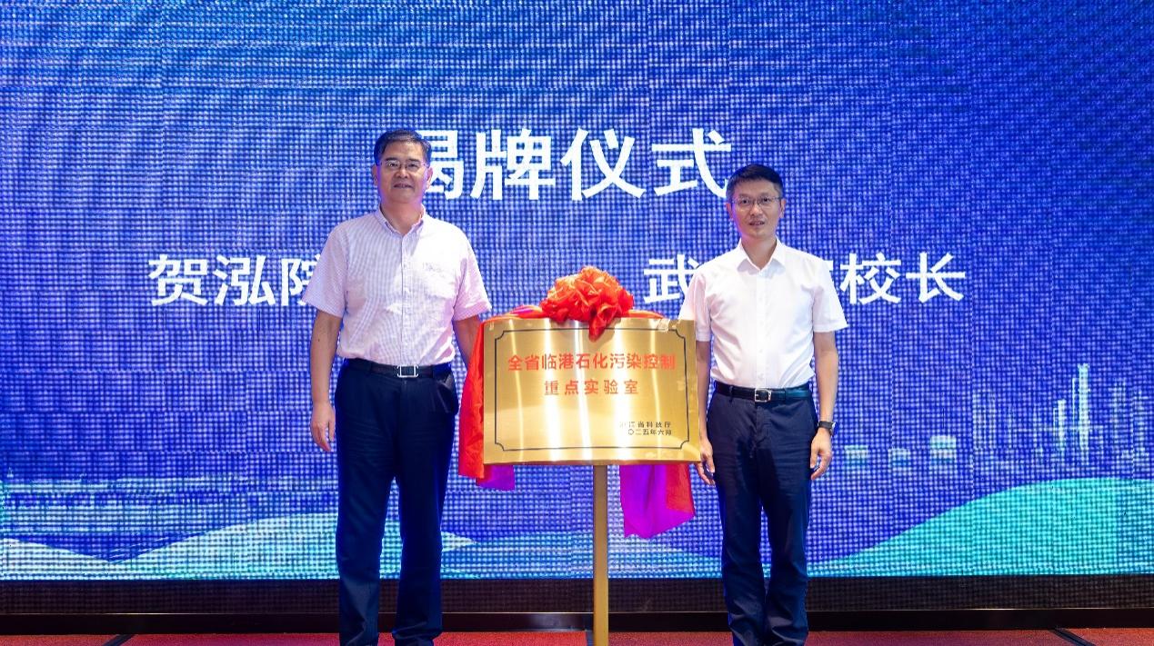 中国科学院城市环境研究所贺泓院士与浙江海洋大学武传宇校长共同为实验室揭牌,标志着全省临港石化污染控制重点实验室正式启航。